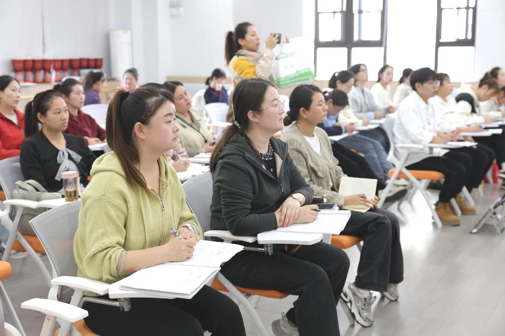 随后,专家老师结合理论与实践案例,围绕学前儿童数学认知核心素养,开展“操作游戏化”主题培训。她为教师解析“情境创设、材料选择”的关键要点,系统讲述幼儿数学认知的培养路径。教师们积极分享教学困惑,逐一突破“探究性内容设计”“数序教学难点”等问题,推动教学经验延伸。