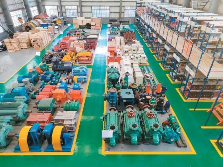 陕西泰丰盛合物资中心内,整齐陈列着各类机电设备。 受访者供图
