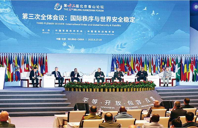 2025年9月17日至19日,第十二届北京香山论坛在北京国际会议中心举办,论坛主题为“共护国际秩序、共促和平发展”,100余个国家、地区和国际组织官方代表及专家学者和各国观察员等1800余名嘉宾出席。图为9月19日与会代表参加主题为“国际秩序与世界安全稳定”的第三次全体会议。 中新社记者 富田/摄