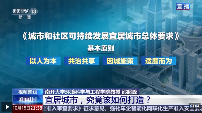 南开大学环境科学与工程学院教授 邵超峰:这个标准从开始立项到最后完成大概用了两三年的时间,在这个过程当中,大家讨论争执的是特别特别热烈。但是给我留下最深刻的问题是,到底什么是宜居城市?关于宜居城市的概念内涵应该怎么来解读?我们在讨论过程中也对接了国际的一些典型的做法,包括像联合国发展计划署等关于城市的一些考核方式,尤其是对标了2030可持续发展议程。在这个基础上,我们认为形成了宜居城市的四个基本原则、六个维度,丰富我们美丽城市的概念和内涵,包括以人为本、因城施策、共享共治、适度而为。我们也达成了社会、经济、环境、基础设施、文化的保护和传承、治理,这样六个维度。