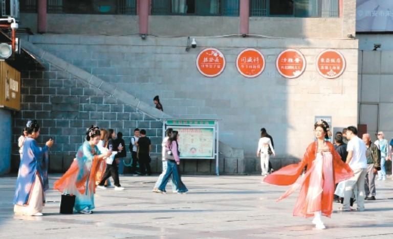 10月15日,西安市阴雨暂停,市民游客见到久违的太阳,纷纷外出享受这难得的秋日暖阳。 记者 尚洪涛 摄