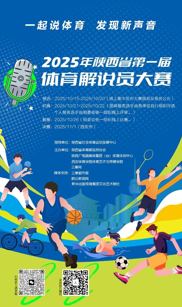 根据安排,个人及团体均可通过指定邮箱272957208@qq.com提交报名材料参与角逐。大赛更多详细信息可通过关注陕西省体育解说员协会官方微信获取。