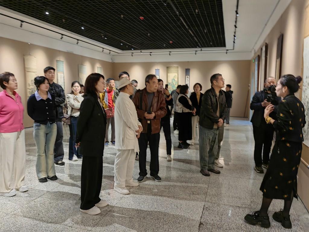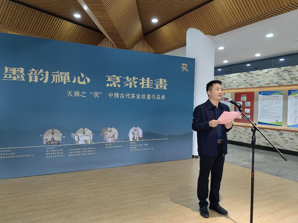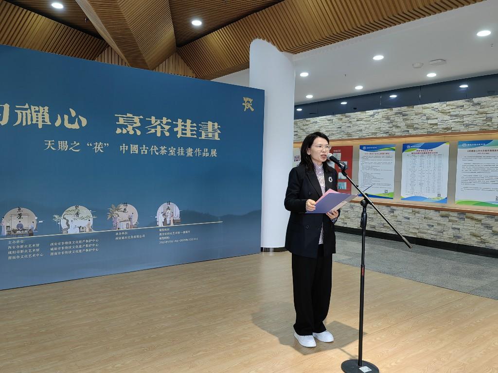 “中国传统文化中,茶与画,向来是同源共生的知己。而‘茶挂’,正是这二者最完美的融合——它不仅是茶室空间的灵魂点睛之笔,更是茶事活动中,引领我们从品饮之味,升华至观想之境的禅心指引。”西安市群众艺术馆副馆长刘素红在致辞中表示,作为连接传统与当下的文化桥梁。本次展览,正是希望将古老的智慧与风雅,融入当代生活,让观众在笔墨与茶香的交织中,深度感知非遗的魅力,从而珍视它、传承它。