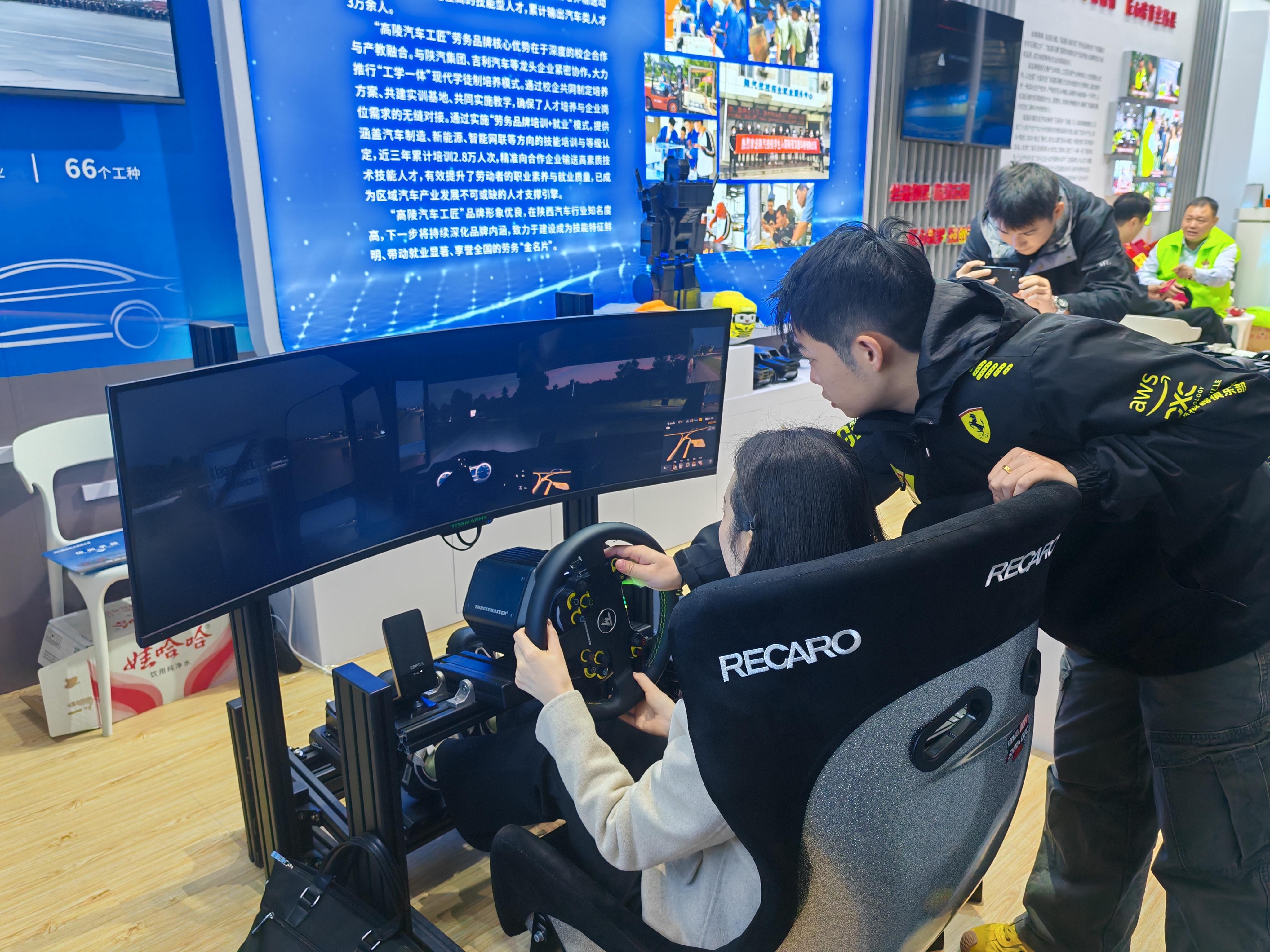 在高陵汽车工匠劳务品牌展台前,一台重卡模拟驾驶设备吸引了许多人的目光,不少人纷纷上前体验当一次卡车司机。这是该劳务品牌培训的一项内容,通过模拟真实生产场景让学员“上手即熟练”。