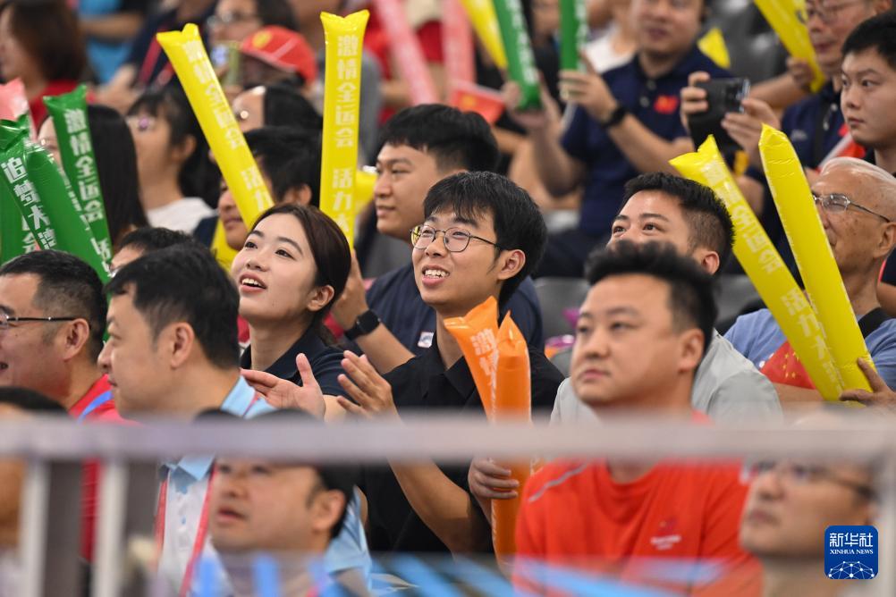 10月16日,观众在观看射击男子10米气手枪团体决赛。