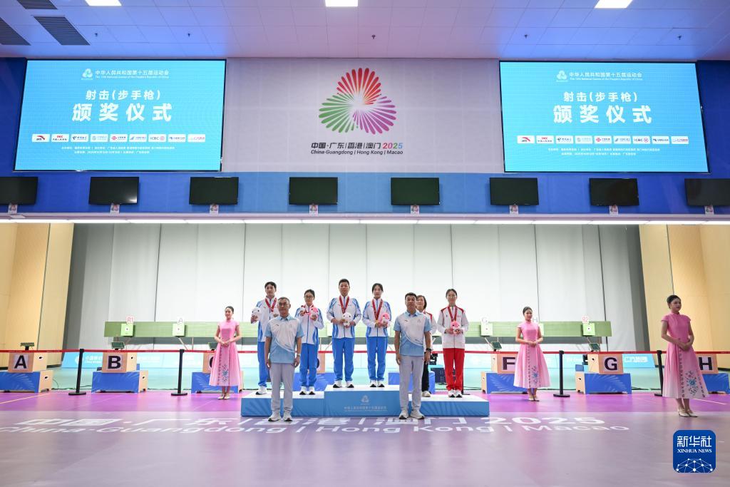 当日,第十五届全运会射击女子50米步枪3种姿势决赛在广州举行。