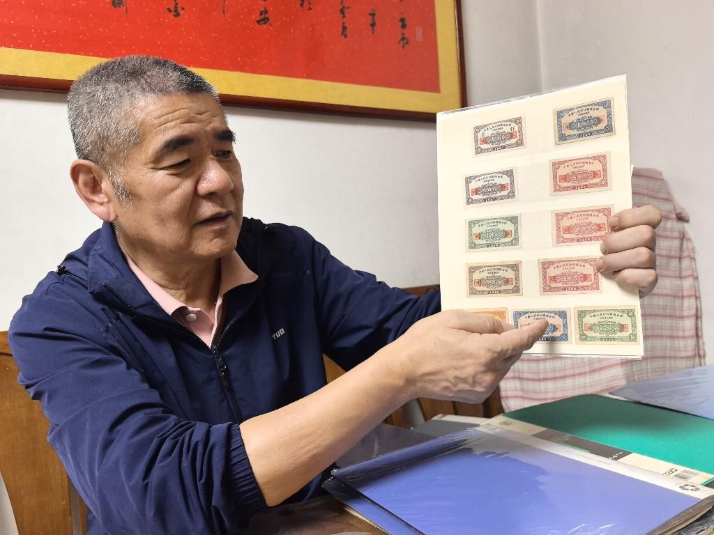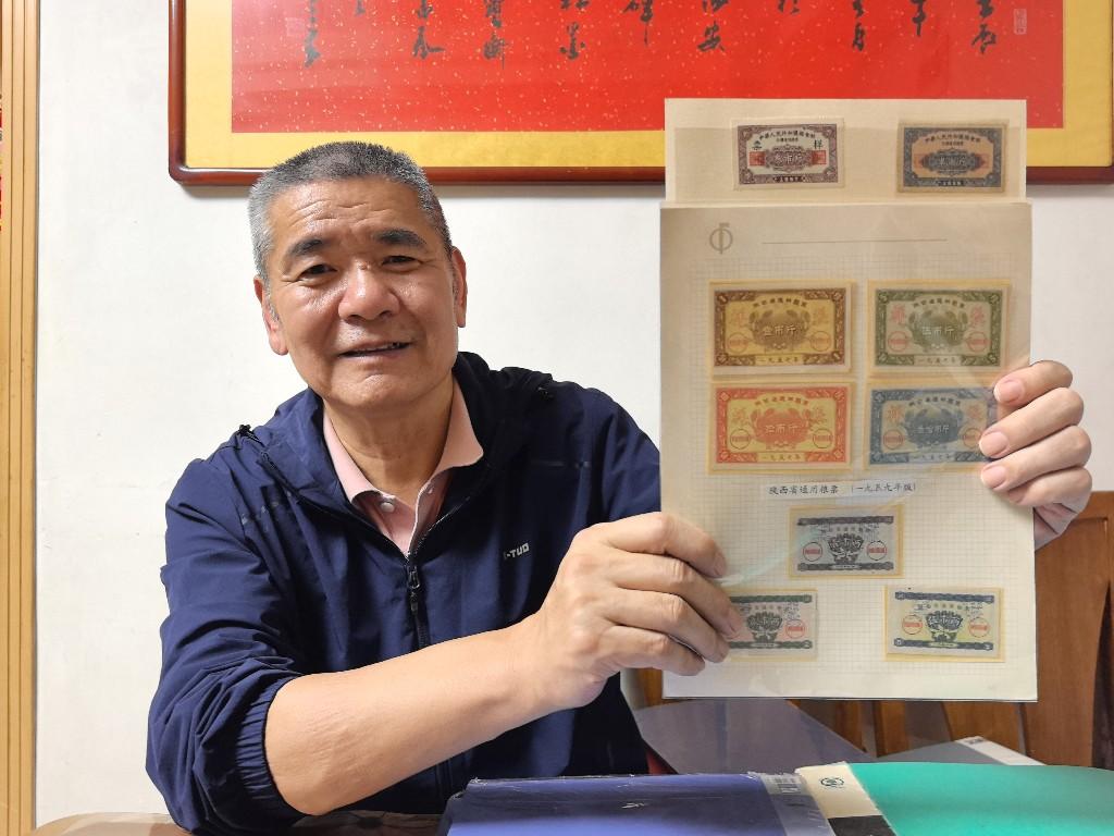 “20世纪50年代到90年代,粮票是人们生活中必不可少的‘硬通货’,有粮票,才有资格花钱买吃的。”赵建国指着票面介绍,陕西省通用粮票从1955年至1987年共发行8套,他全部集齐了,面额有一两、四两、八两等,精确到每一口粮食的配给。