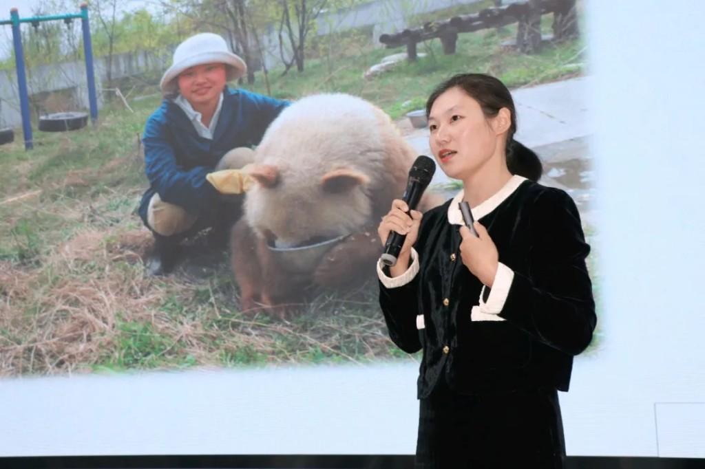 紧接着,秦岭大熊猫研究中心(陕西省珍稀野生动物救护基地)兽医师、自然体验师徐光岚以《我们与动物的双向奔赴》为题进行分享。她结合多年与大熊猫、金丝猴等珍稀野生动物近距离接触的真实工作案例和感人故事,生动讲述了野生动物保护工作者与动物之间的情感联结,深刻诠释了人与自然和谐共生的理念。