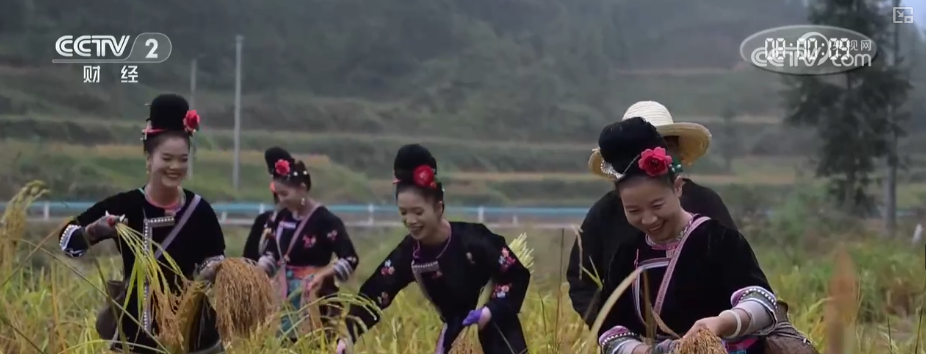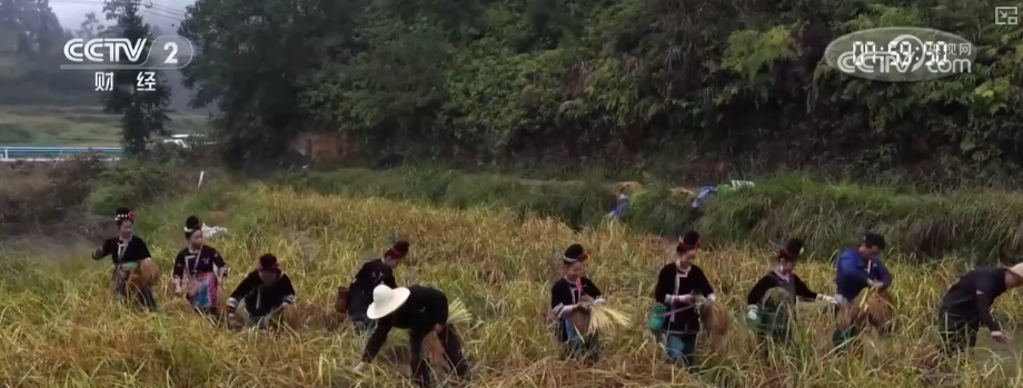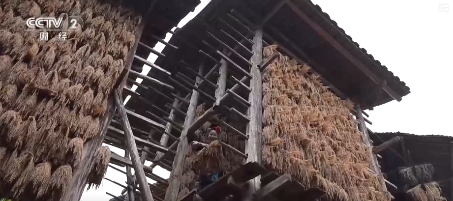 这段时间,村民们把陆续收割的香禾糯挂到专门建造的禾仓上去晾晒。黄岗侗寨的309栋禾仓依山而建,散落在民居中,层层禾晾,构成一幅独特的禾晾秋韵图。