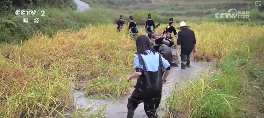 如今,在黄岗侗寨捉田鱼已经成了比较受欢迎的体验游项目,这个时节也正是稻花鱼肥美的季节。这一丘田刚刚收割完糯米,并且水已经放了一半,正是抓鱼的好时候。
