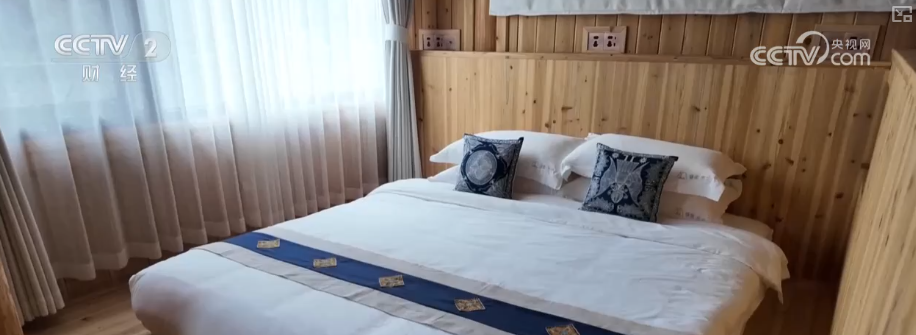 这一栋就是用禾仓来打造的民宿,它的外形没有变,木质的结构没有变,里边的设施按照现代民宿标准来进行打造,住着非常舒服,并且功能齐全。如今,来黄岗侗寨住禾仓民宿、看田园风光、感受丰收图景,已经成了侗寨的一张新名片。