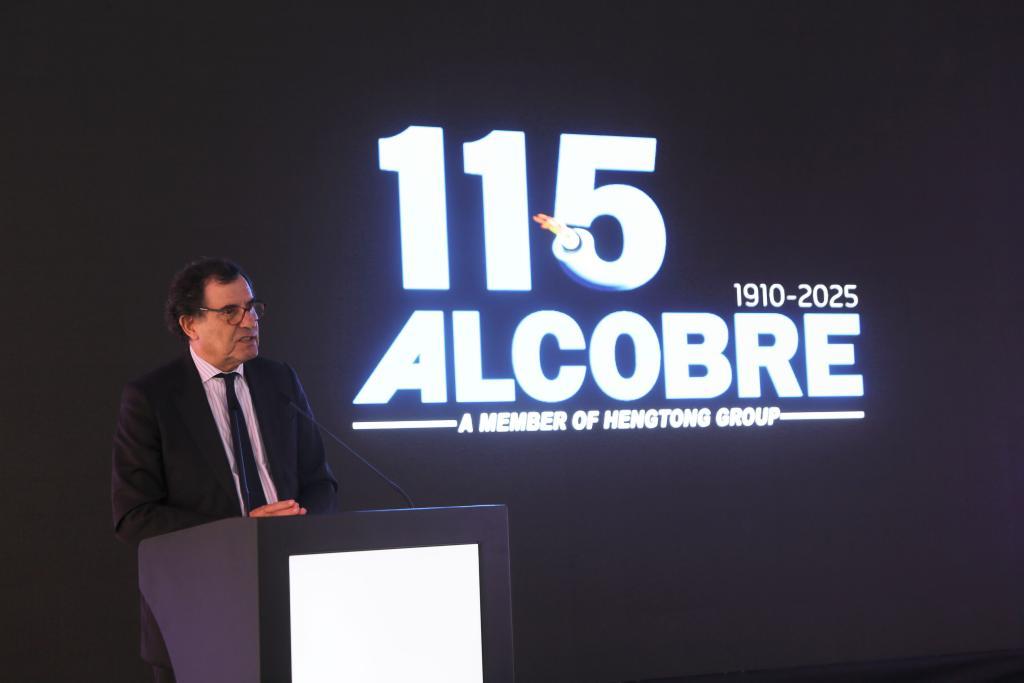 10月3日,葡萄牙经济兼国土融合部长曼努埃尔·卡斯特罗·阿尔梅达在葡萄牙北部奥瓦尔市举行的阿尔科夫雷电缆厂115周年庆典仪式上致辞。新华社记者荀伟摄