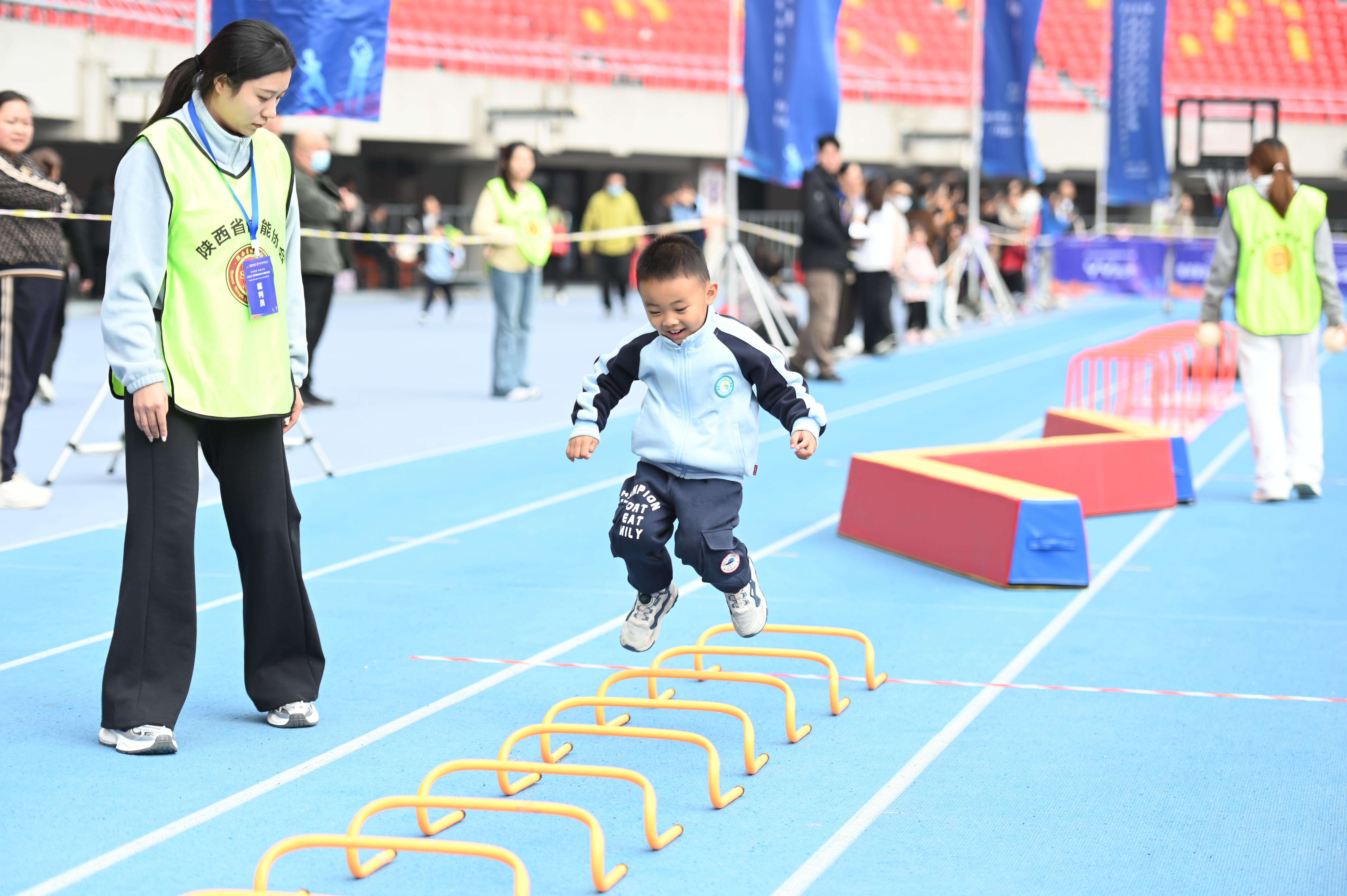 赛事的全龄化定位,也吸引了不少家庭参与。参赛幼儿家长程良先生分享道:“我儿子今年5岁半,在陕西艺术幼儿园上大班,平时特别喜欢运动,除了今年暑假报的篮球班,还爱跑步、跳绳、打沙包。我觉得多参加体育运动对孩子帮助很大,能提升协调能力、保护视力,还能增强身体素质和抵抗力,让孩子少生病。”
