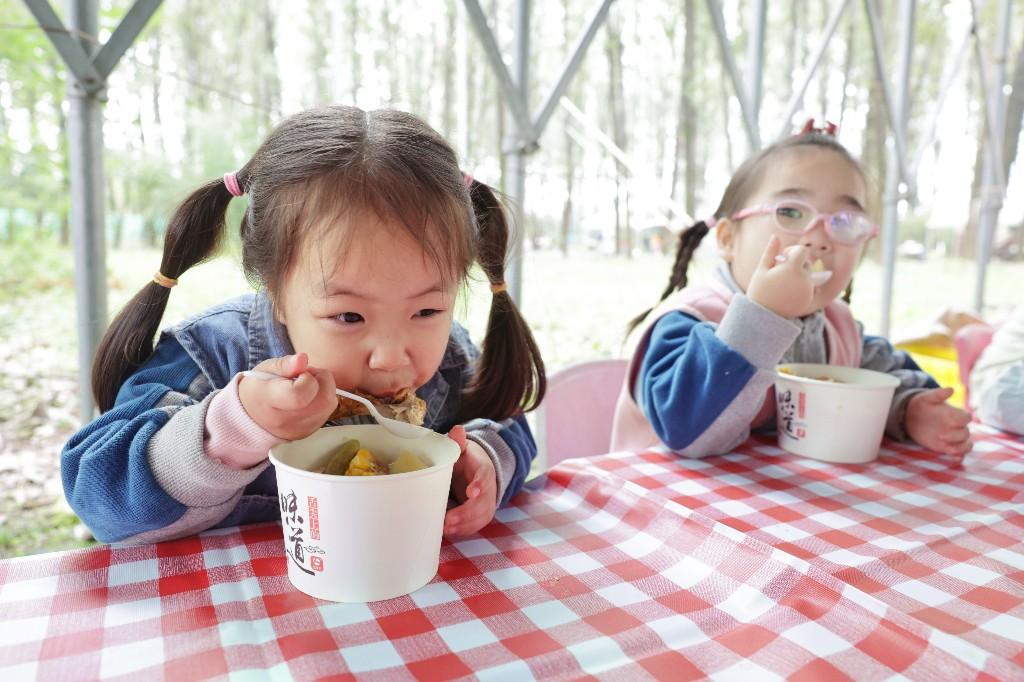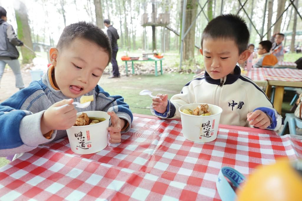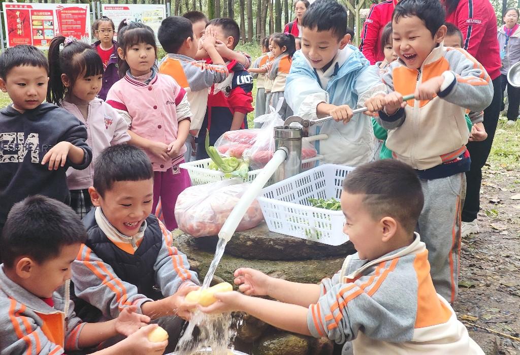 中午时分,田园里飘起阵阵香气——“铁锅炖”美食环节如约而至。孩子们围坐在灶台旁,看着食材在铁锅中慢慢炖煮,不时好奇地询问“什么时候能吃呀”。当热气腾腾的炖菜端上桌,孩子们大口品尝着劳动后的美味,脸上满是满足的笑容,也感受到了乡村美食的独特风味。