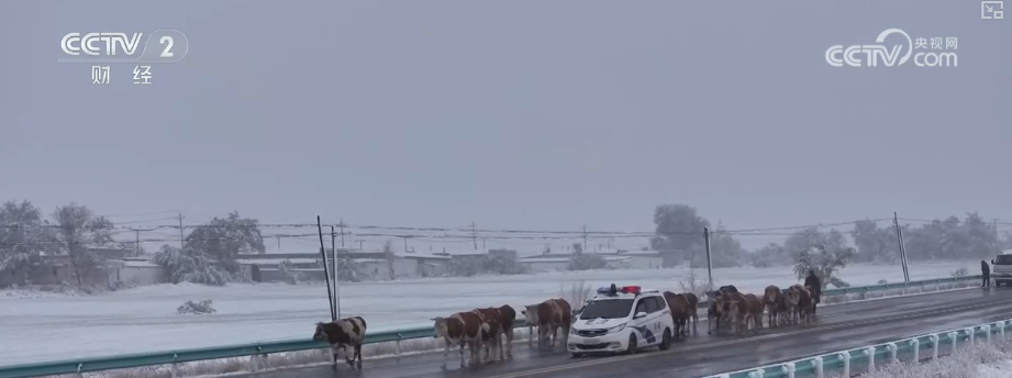 近日,新疆奇台县出现降雪,给牧民秋季转场工作带来了挑战。当地派出所迅速组织护牧小分队,在转场必经之路全程护送,为牧民转场护航。