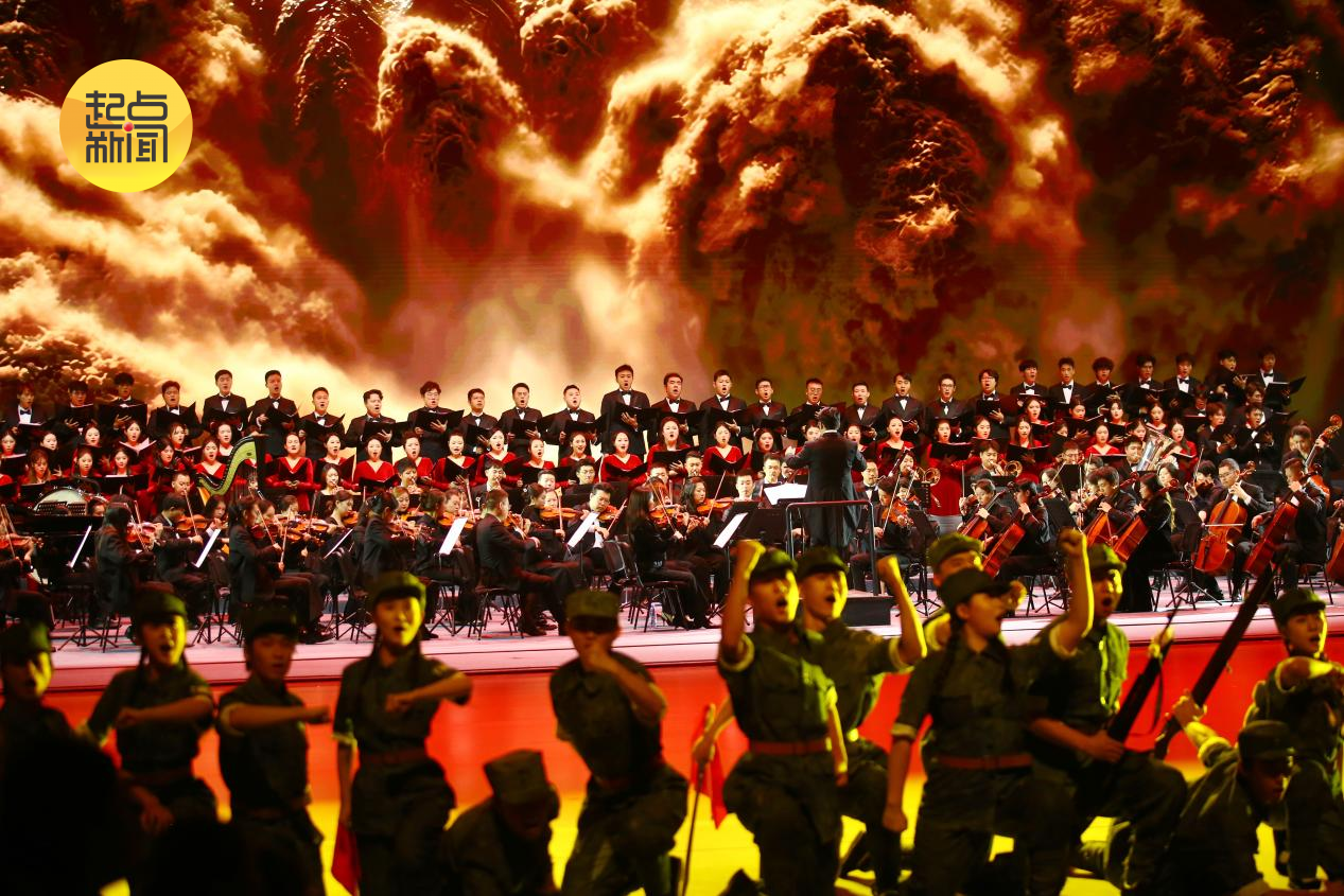 西安交响乐团、西安交响乐团合唱团、延安大学鲁艺合唱团与全场观众共同奏唱《抗日军政大学校歌》