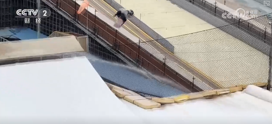 位于成都新都区的尖锋旱雪场,主要由“金针菇旱雪跳台”和巨大的弹性气垫构成,因其旱雪的独特定位而在业内小有名气。据介绍,自2025年5月份起,每天来到这里磨炼滑雪跳台技术的滑雪运动爱好者都超过了300人次。