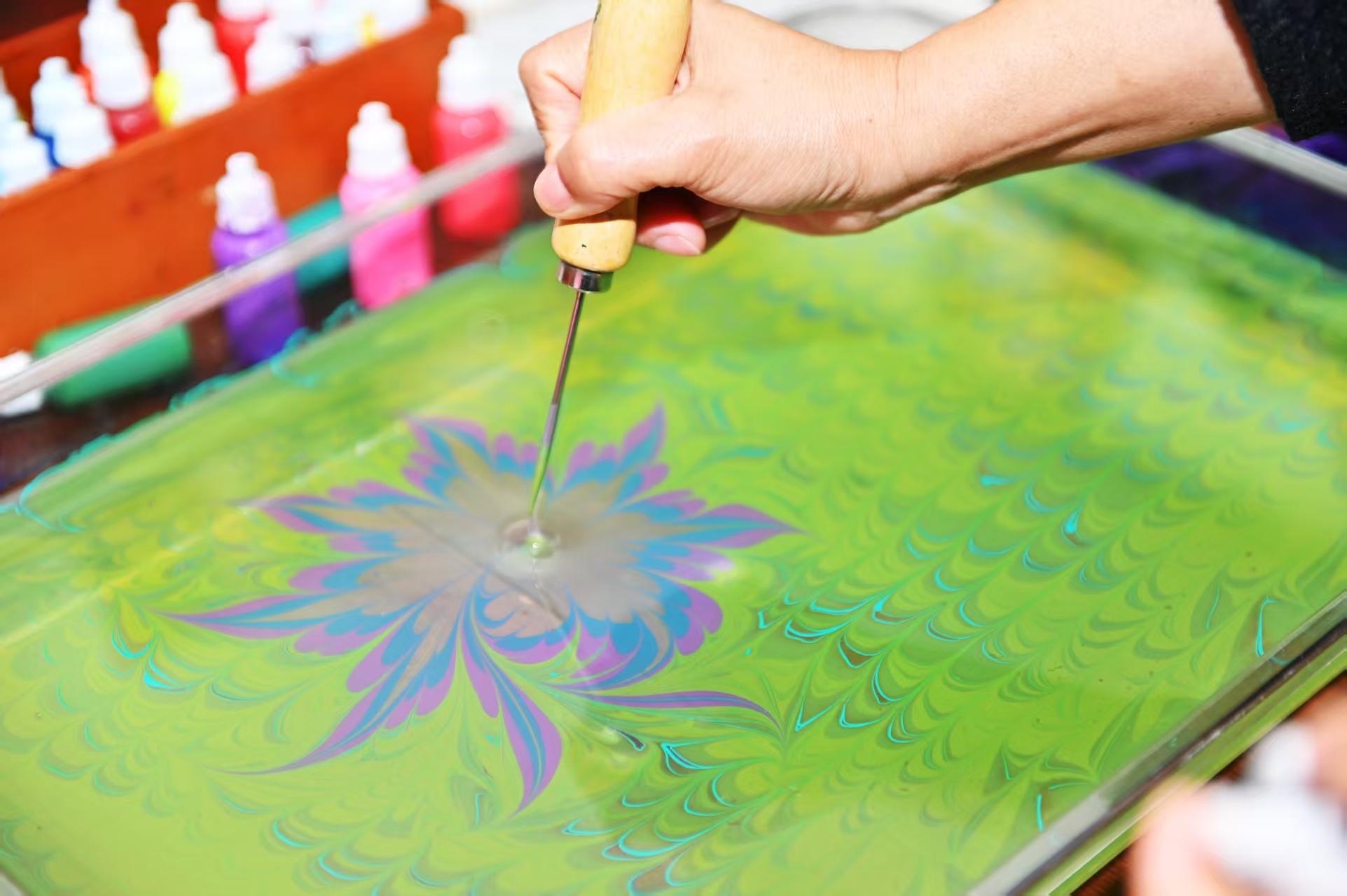 “第一次用画锥在水里创作,反复调整了3次滴料位置才满意,这正是非遗技艺的匠心所在。”大学老师张先生表示,唐流彩看似简单,实则非常考验艺术功底,颜料搭配、滴入位置与多少都会影响作品成败。刘女士则称完成作品时“仿佛经历了一场穿越时空的奇幻之旅”,“看着色彩如同有生命一般在器物表面肆意流淌交融,形成千变万化却又和谐统一的图案,感受到了从未想象过的奇妙。”