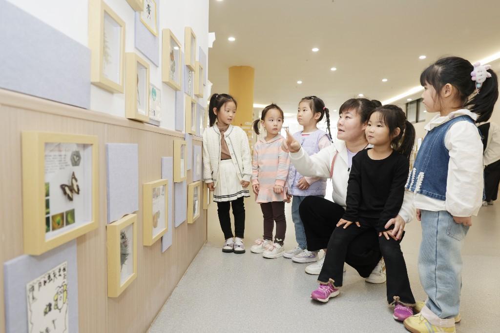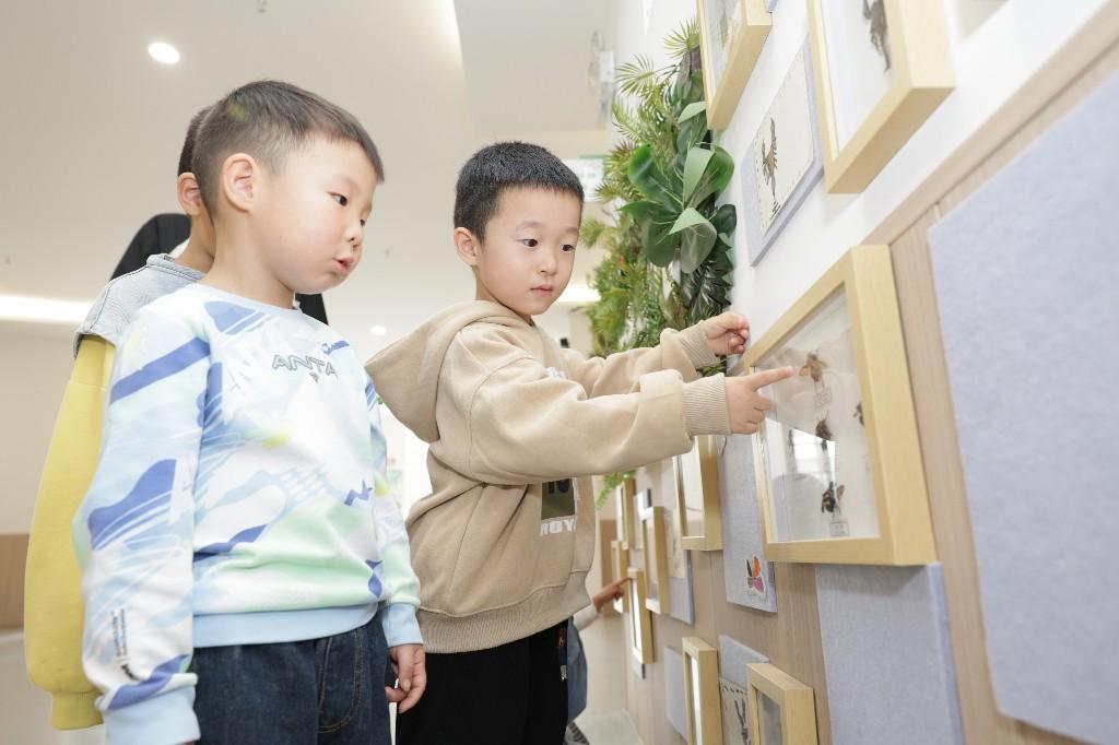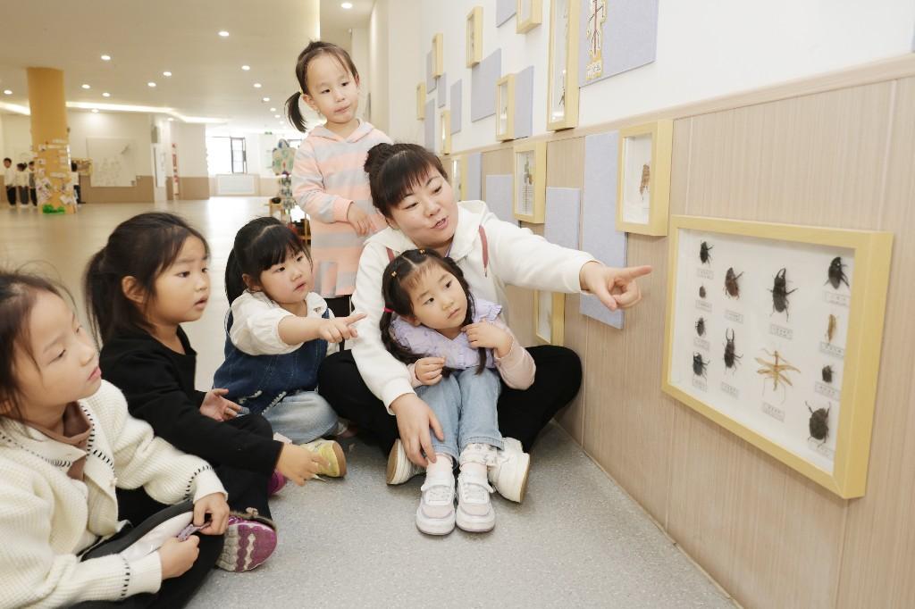 这座博物馆不仅是园内的一道风景,更成为激发幼儿探究欲望的“引擎”。孩子们通过观察、比较和记录,将三百余件动植物标本转化为学习素材。一名幼儿兴奋地分享他的发现:“我和朵朵一起比天牛,黑天牛有10只,黄条条的天牛只有2只,我的天牛比她的大一点点!”这些充满童趣的对话,取代了传统的说明牌,让“好探究、乐创造”的育人目标变得可视可触。
