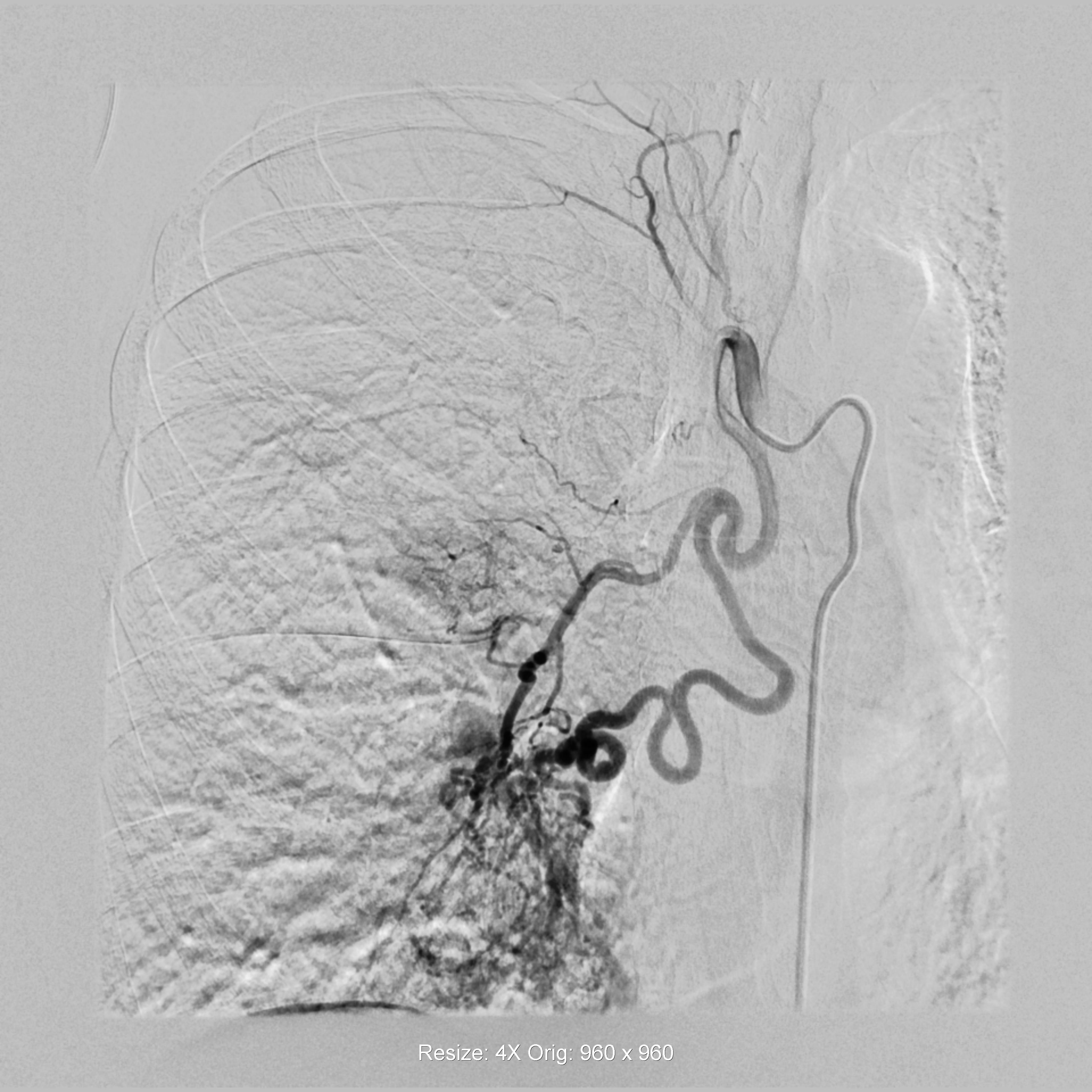 传统手术治疗此类病症对医患双方都是不小的挑战。医生需将导管送入胸主动脉,凭借实时透视画面“盲探”调整导管和导丝位置,完成目标支气管动脉的“超选”操作。但冯阿姨的支气管血管本就走形复杂,加之迂曲扩张,传统“盲探”式超选失败率超50%,不仅可能引发脊髓动脉误栓致瘫痪、大血管撕裂等风险,手术耗时还需2小时以上,医患暴露在X射线中的时间更长,造影剂用量大,对身体虚弱的冯阿姨而言风险加倍。