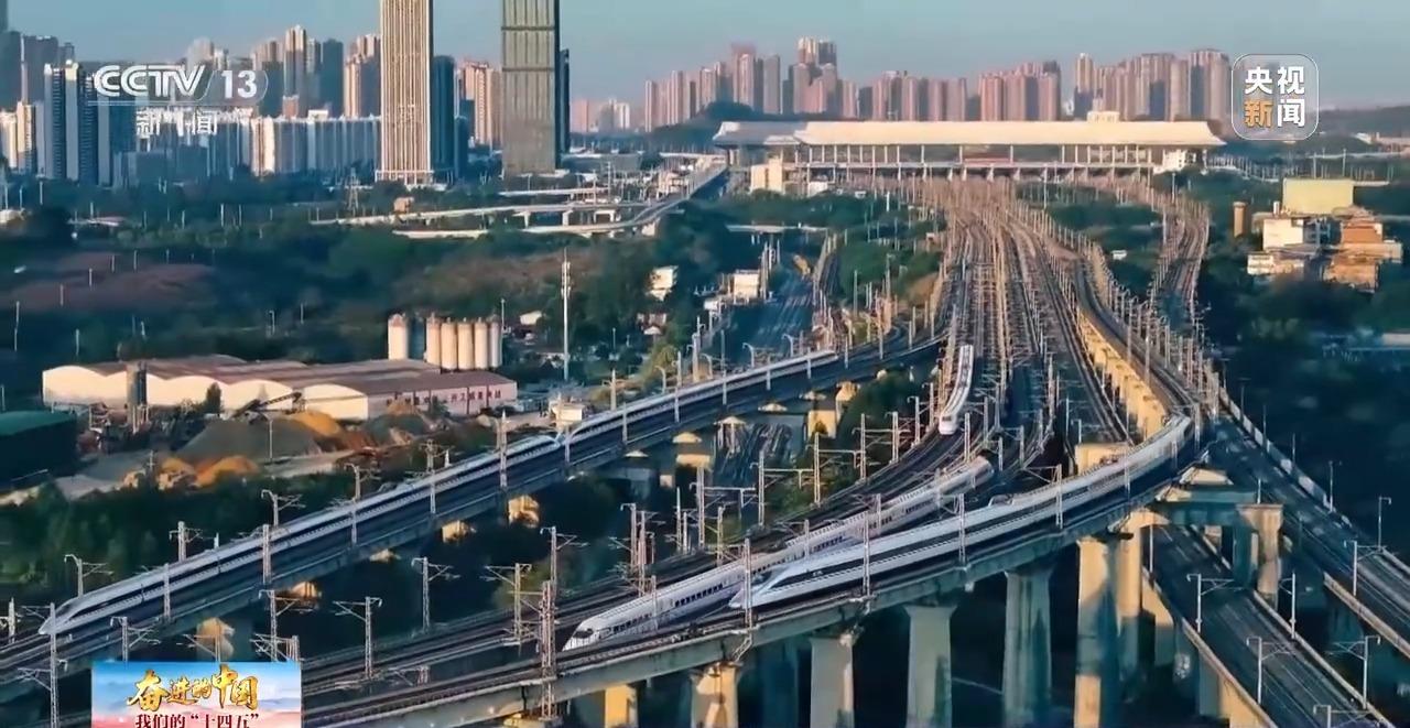 这五年,我国新增高铁里程1万公里,复兴号覆盖了31个省区市。今年是“十四五”收官之年,到今年末,我国高铁总里程将突破5万公里,高铁网将覆盖更多的地方。“十四五”期间,列车经停的车站也越来越多。这五年,我国16万多公里铁路线上新增了400余座车站,奔驰的列车在更多地方驻足,也给更多的人带来生活的改变。