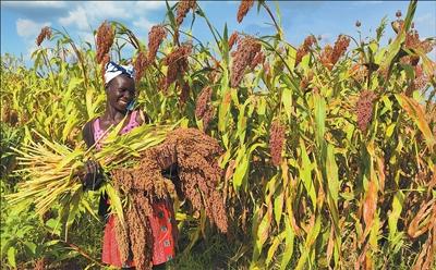 乌干达首都坎帕拉郊外,在中国农业专家的技术指导下,当地高粱获得大丰收。