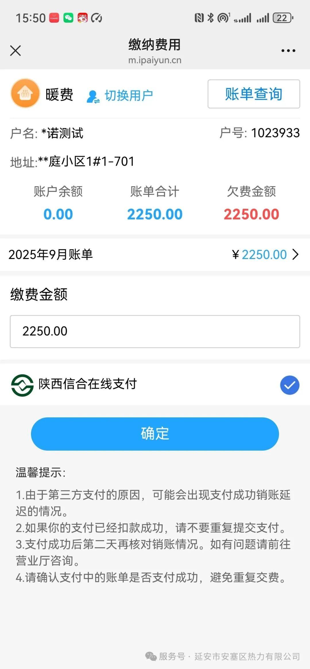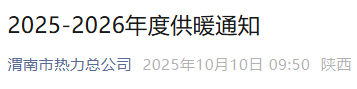 热电公司已完成14公里老旧管网更新改造和12座换热站“汽改水”节能改造,构建起覆盖重点管网的智能感知体系,通过 “人防+技防”双重保障模式,提升管网运维效率和应急保障能力。 此前,西安新航燃气能源有限公司发布《2025-2026年度供暖季供暖通知》。 供暖时间拟定为2025年11月15日至2026年3月15日,将根据行业主管部门要求对集中供热的起止日期进行调整。收费标准按照建筑面积收取供暖费用(居民5.8元/㎡/月,非居民7.5元/㎡/月)。对层高在3米以上按建筑面积收取热费的建筑物,在计算标准采暖面积时要增加折标系数。具体计算公式为实际热费=供热价格×建筑面积×(实际层高÷3)×4。 需要注意,用户停止用热或者恢复用热,应当于当年集中供热开始之日的十五日前(11月1日前)向供热企业提出申请,供热企业应当在接到申请之日起五个工作日内作出答复。停止用热的用户,应当向供热企业缴纳基本热费(30%)。已成功办理停热申请的用户,如申请恢复供热,需在“西安新航燃气能源有限公司服务号”微信公众号中选择“报停复热”点击“复热”并将未交纳的70%热费补齐。 10月10日,渭南市热力总公司发布2025-2026年度供暖通知。 2025-2026年度供暖通知 尊敬的热用户: 2025-2026年度采暖季即将到来,为切实做好年度供热服务工作,渭南市热力总公司就供热服务相关事项通知如下: 一、收费标准及供暖时间 • 收费标准: 居民:按建筑面积收费:5.60元/月·㎡; 非居民:按建筑面积收费:7.50元/月·㎡。 • 供暖期:11月15日起至次年3月15日止,如遇特殊情况,以政府对外发布时间为准。 二、缴费方式 通用缴费方式: 微信公众号:关注“渭南市热力总公司”公众号,选择“热力缴费”输入用户信息,根据提示交费。 支付宝:支付宝“生活缴费”下的“暖气费”,选择“渭南市热力总公司有限公司”,输入“用户信息”,根据提示交费。 三、办理报停 串联式小区本采暖季暂不需要供热的用户请于10月31日前,到渭南市热力总公司一楼客户服务大厅(渭南市临渭区六泉路与渭华大街十字西北角)或小区暖费收费处办理报停手续。未按要求办理报停手续视为正常用热,按当年采暖季(四个月)缴纳全部供暖费用,不得中途报停或选择性缴费。 四、服务咨询 • 咨询电话:0913-8591199 • 公司地址:渭南市临渭区六泉路与渭华大街十字西北角(宝能华府北门对面) 渭南市热力总公司有限公司 2025年10月10日 10月9日,延安市安塞区热力有限公司发布供热公告:11月1日正式供热。 2025-2026年度冬季供热临近,为了更好地向广大热用户提供安全、优质、高效的供热服务,延安市安塞区热力有限公司根据《延安市集中供热条例》《延安市安塞区城市集中供热管理暂行办法》的相关规定,现将本次采暖期供热收费及相关事宜公告如下: 一、本采暖期注水、供热时间 1.2025年10月11日—10月20日开始对城南、城北一次网注水、冷循环。 2.2025年10月15日—10月25日陆续以换热站为单位对二级管网分区、分片注水、打压、冷循环。 3.2025年11月1日正式供热。 4.本采暖期总供热时间:2025年11月1日至2026年3月31日,采暖期总计151天。 二、本采暖期热费收取标准 本采暖期热费收取标准执行延安市安塞区经济发展局《关于转发<关于延安市区2025-2026年采暖期集中供热销售价格的通知>的通知》(塞经发〔2025〕63号)文件对供热价格的批复。具体如下: 一类:居民用热4.50元/月·平方米(包括居民用热,各类学校、幼儿园和养老院等社会福利场所)。 二类:非居民用热7.50元/月·平方米(包括党政机关事业单位、工业企业、经营服务)。 三类:报停用户需按总热费的30%缴纳基础热费。 三、供热缴费时间、地址及方式 1.缴费时间: 2025年10月10日开始,每日8:00—12:00,14:00—17:30。 2.缴费地址: (1)线下缴费地址:延安市安塞区热力有限公司厂区内收费厅(白坪大街17号)。 (2)线上缴费地址:通过搜索“延安市安塞区热力有限公司”微信公众号,完成线上缴费。 3.缴费方式: 已安装热表用户缴费方式: (1)线下缴费 在规定时间内携带热用户证及热力卡到延安市安塞区热力有限公司收费厅办理。 第一步:1—5号窗口开票缴费; 第二步:启卡,回家后用IC卡在热表上刷卡; 第三步:观察IC卡热表是否正常开启。 (2)线上缴费 通过“延安市安塞区热力有限公司”微信公众号进行线上缴费。 如发现IC卡热表未正常开启,请及时联系安塞热力公司上门解决。(供热服务热线:0911-6223069;0911-6223169)。 串联用户缴费方式: 串联用户暂不支持线上缴费,需到热力公司收费厅办理线下缴费。 (1)在规定时间(2025年10月10日—10月31日)内携带有效证件到延安市安塞区热力有限公司收费大厅办理缴费手续。 (2)串联用户小区在10月31日前缴费率达100%的方可开阀供热。 (3)请各串联住户互相转告提醒,务必在规定时间内缴费,以免影响正常用热。 四、缴费须知 1.各用热单位及热用户请于10月31日前将2025—2026年度采暖费一次性缴纳。 2.历年存在欠费的单位及用户需在今冬供热前一次性缴清所欠热费,否则不予办理本采暖期缴费用热手续,由此造成的用热问题由欠费单位及用户自行承担。 3.有历史欠费的用户暂不支持线上公众号缴费。由此带来的不便敬请谅解。 五、本采暖期不用热的用户须知 本采暖期不用热的串联用户(未分户控制,上供下回用热方式的用户)请务必于2025年10月31日前向延安市安塞