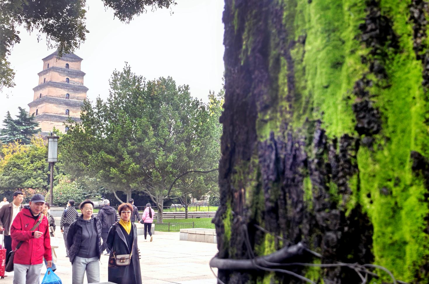 三秦都市报-三秦网讯(记者 阮班慧)连日降雨过后,西安这座千年古城迎来了一抹别样的绿意。穿“绿衣”的不止古城墙,西安的绿意藏在更多的细节里。不少古建筑青瓦屋顶上的瓦沟间,不经意间冒出了点点翠绿,或是青苔连片,或是嫩芽初绽,为古朴的飞檐黛瓦增添了灵动的气息。街边与景区内的很多树干也纷纷披上了“新装”,湿润的树皮上长满了翠绿的青苔,如同裹上了一层柔软的绿色绒衣。雨水冲刷后的西安,在镜头下满眼皆是深浅不一的碧绿,古老与新生在此刻交融,构成了一幅独特的城市画卷,引得市民与游客纷纷驻足欣赏。