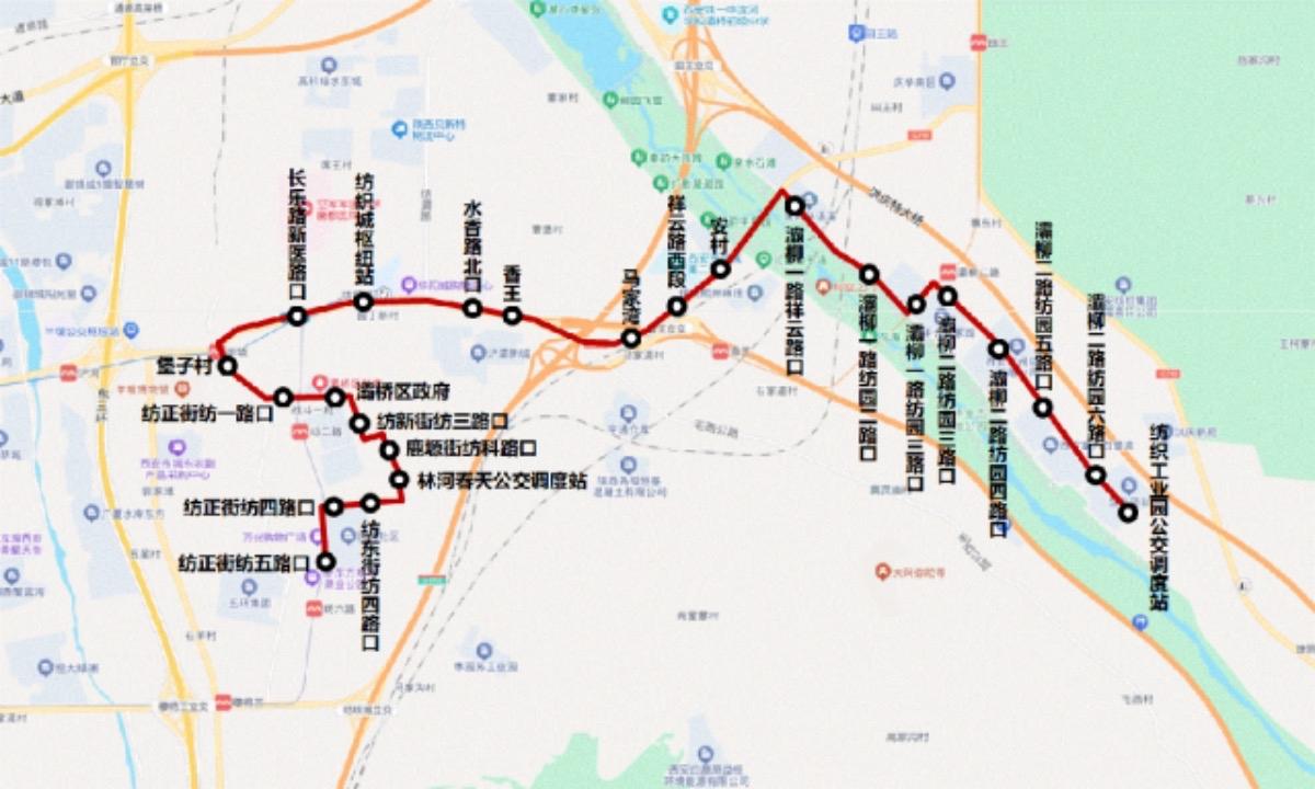 新增站点7个:纺正街纺一路口、灞桥区政府、纺新街纺三路口、鹿塬街纺科路口、林河春天公交调度站、纺东街纺四路口、纺正街纺四路口。