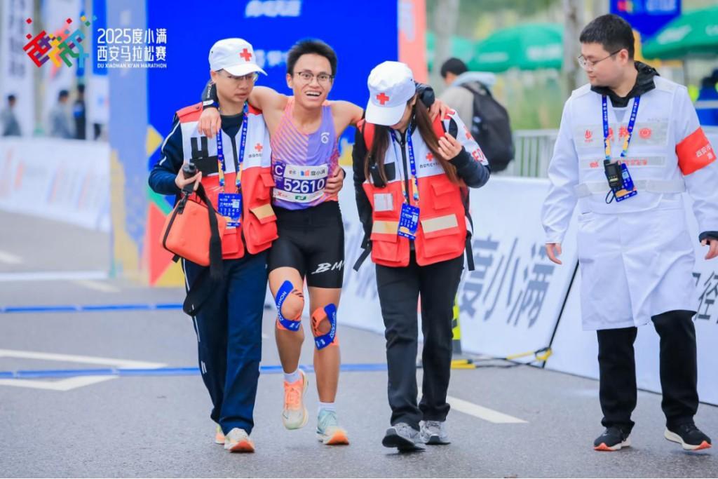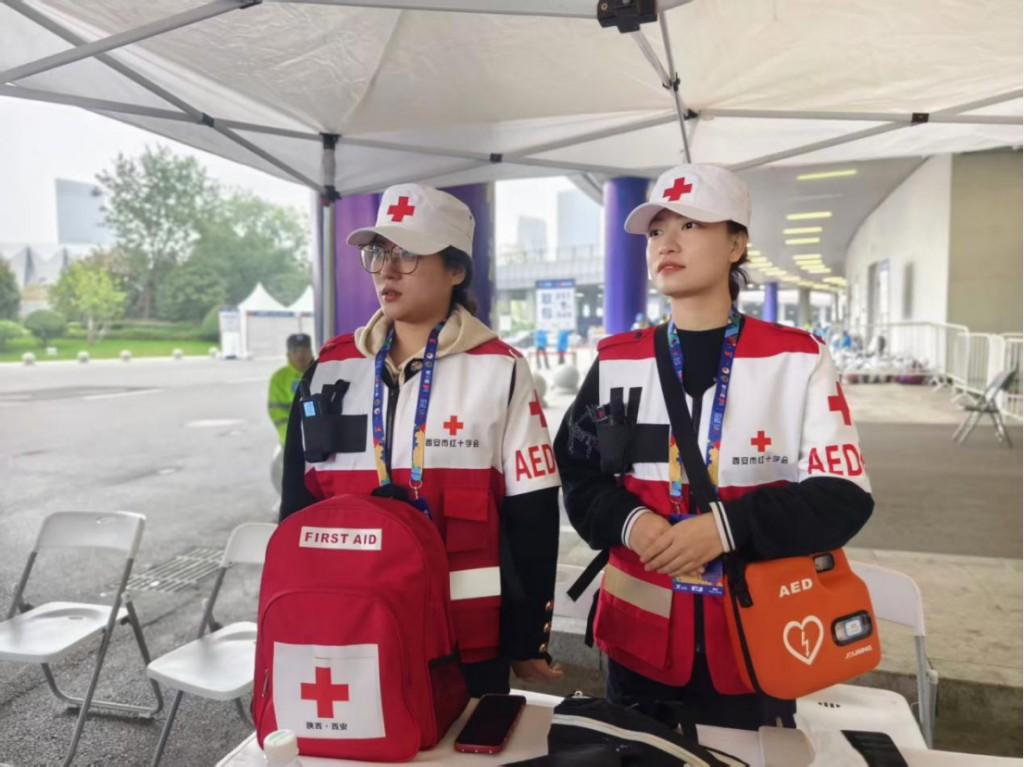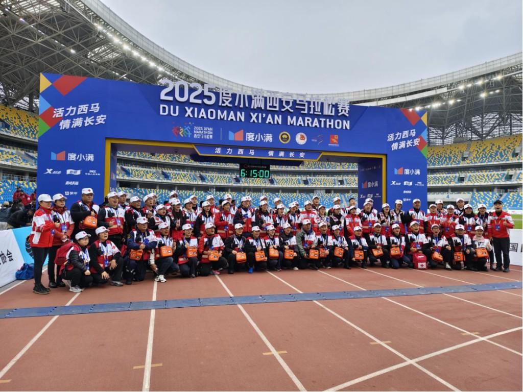 在奔跑的激情背后,安全是赛事的底线。230名来自西安市红十字会与市红十字应急救护服务中心的志愿者,携带着AED设备,如“移动的生命哨兵”般分布在赛道各关键节点。