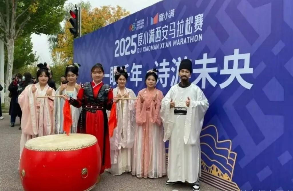 在未央赛段,西安市未央区益人行志愿者协会协办两座以“诗说未央、诗游未央”为主题的文化加油站,通过歌舞、锣鼓及大汉军阵等表演,呈现了未央深厚历史与现代时尚的古今交融。志愿者手持趣味横生的“唐诗加油牌”,以掌声、呐喊和笑容,持续为跑者加油助威,将盛唐诗意与体育激情完美融合。
