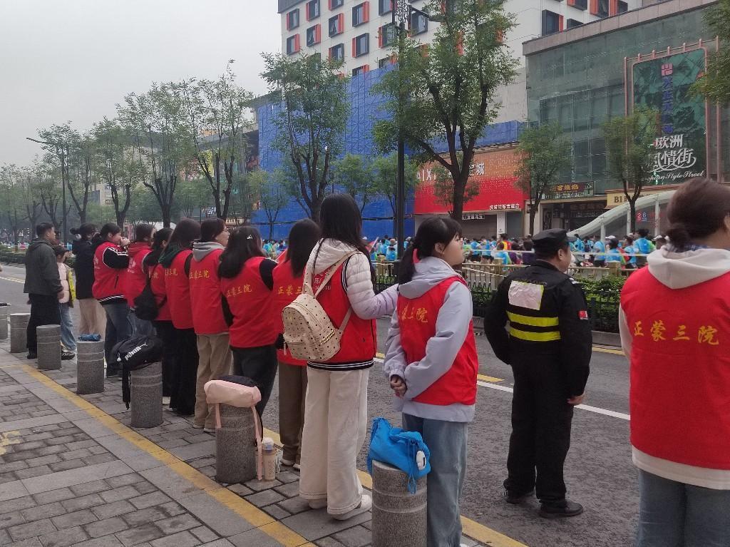 当日,西安慈善中安应急救援志愿者服务队联合多所高校及社会爱心人士共120余人,在钟楼东大街、奥体中心等重点路段开展志愿服务活动。赛前一周,志愿者汪哲组织全员进行安全培训,对风险路段逐一评估;比赛当天,李荣军、魏飞飞等负责人现场调度,确保秩序井然。
