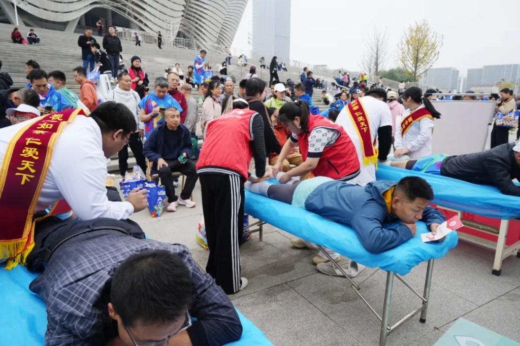 在终点区域,一股别样的暖流悄然流淌。西安市慈善会组织多支直属志愿队,设立热饮补给站,为跑者和观众送上热茶与咖啡,驱散秋日寒意。中医推拿点前,专业推拿师为疲惫选手舒缓肌肉,赢得阵阵好评。