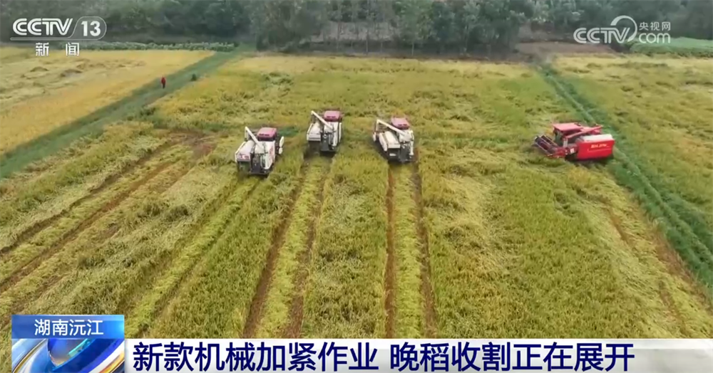 眼下,湖南1900多万亩的晚稻已经陆续开镰。当地采用新款机械开展作业,全力抢收抢烘,预计到11月初全部收完。