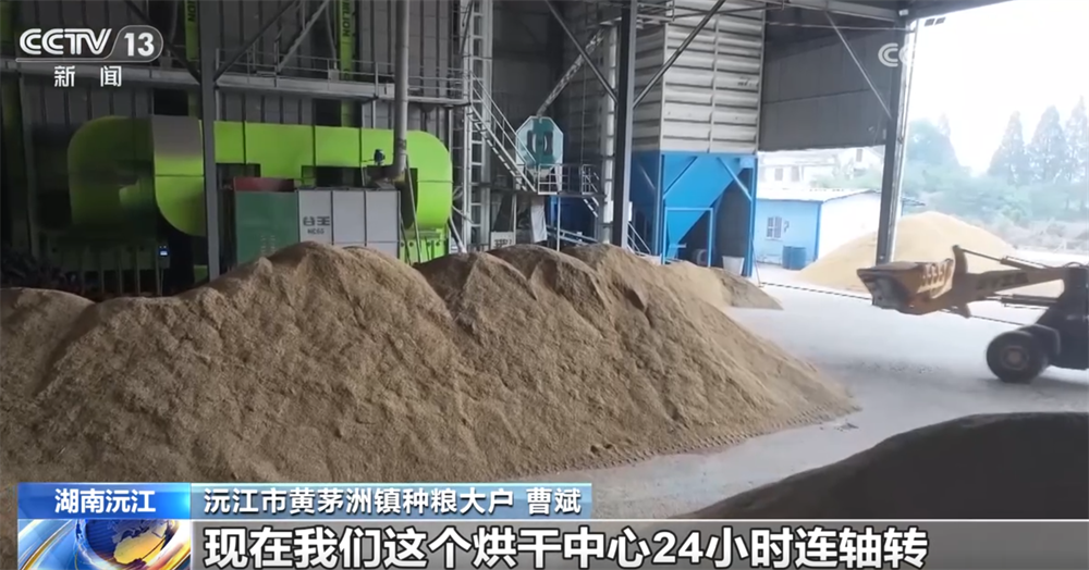 曹斌称:“现在我们这个烘干中心24小时连轴转,一天就能烘上千吨粮,不仅满足了自己稻田的需求,还可以辐射周边的一些农户。”