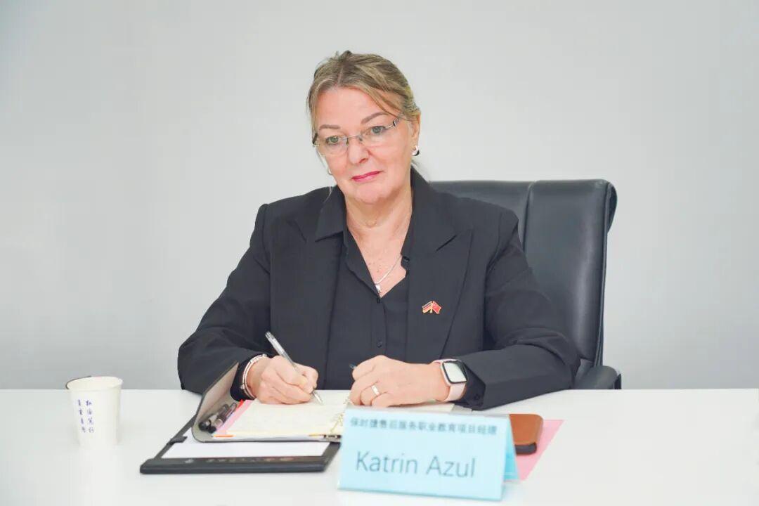 保时捷售后服务职业教育项目经理凯特琳·阿苏尔(Katrin Azul)对学校的热情接待和办学成果表示肯定,并介绍了保时捷的发展概况及人才梯队建设体系。她表示,企业的发展离不开人才支撑,西安汽车职业大学在汽车专业领域的教育积淀深厚,培养的学生实践能力突出,是企业重要的人才储备基地。此次合作既是双方优势互补的重要举措,也是推动产教融合向纵深发展的具体实践,希望通过共建实训基地、共组教学团队、共研技术项目等方式,打造校企协同育人的典范,为行业发展注入新动能。