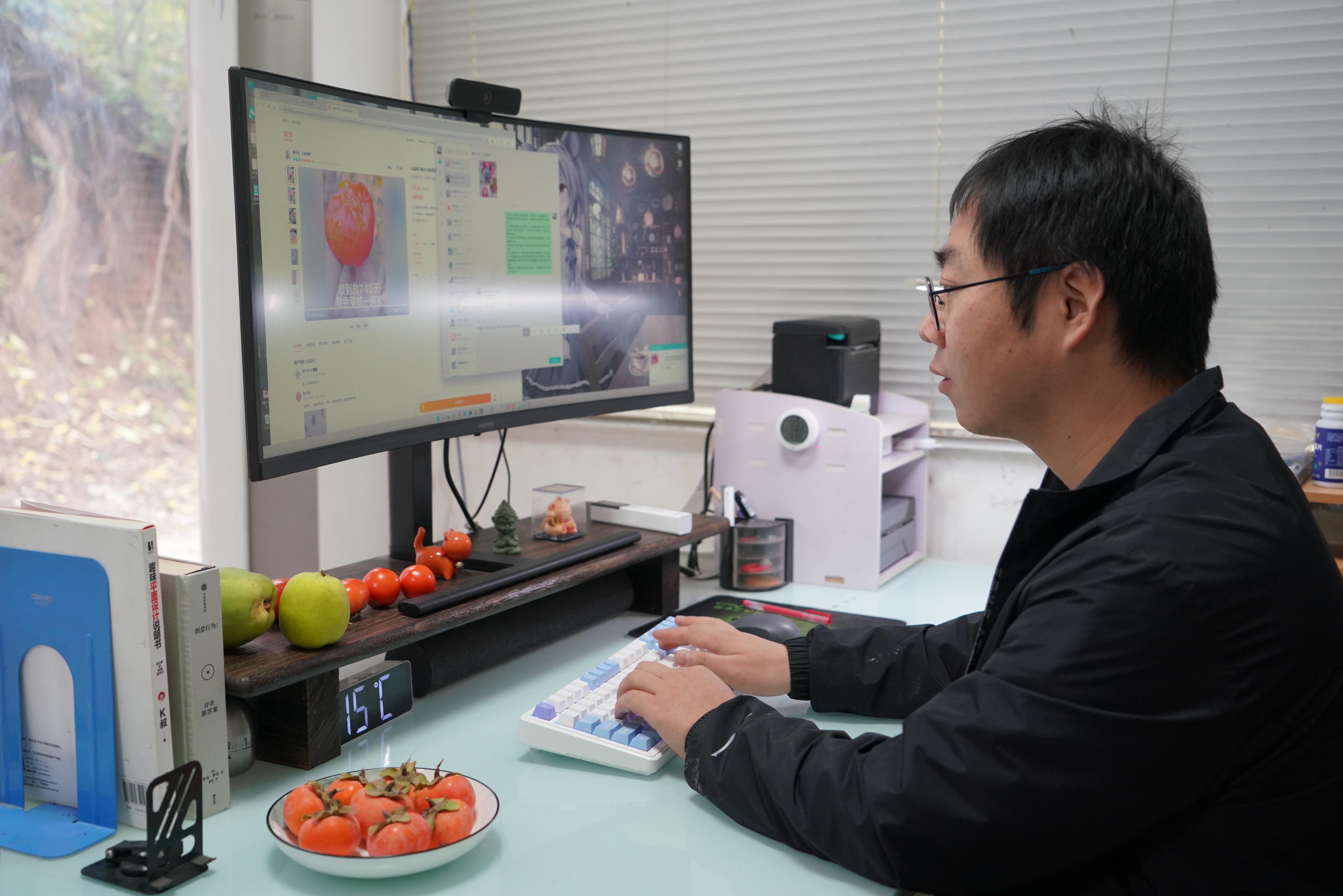 三秦都市报-三秦网讯(罗文艳 记者 胡琳)10月21日,在西安市临潼区秦陵街道秦俑村电商销售基地,负责人张博攀在电脑前忙着回复顾客咨询,屏幕上订单提醒的图标还在不断闪烁。