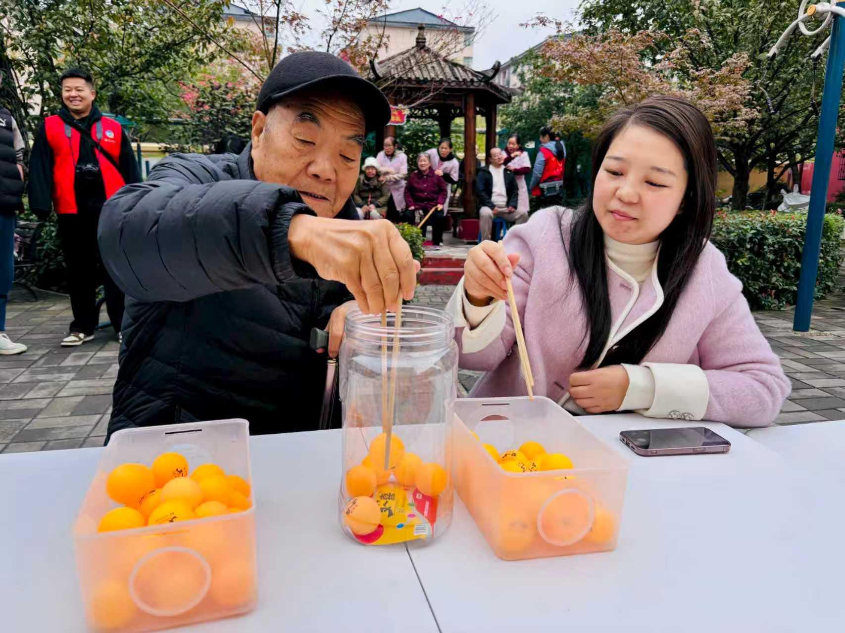 “社区想得太周到了,这个艾草锤捶肩颈特别舒服,今天剪了头发、测了血压,还和老邻居们一起玩游戏,心里暖和得很!”社区老人王彩莲说,“每年重阳节社区都有活动,让我们感受到实实在在的关怀。”