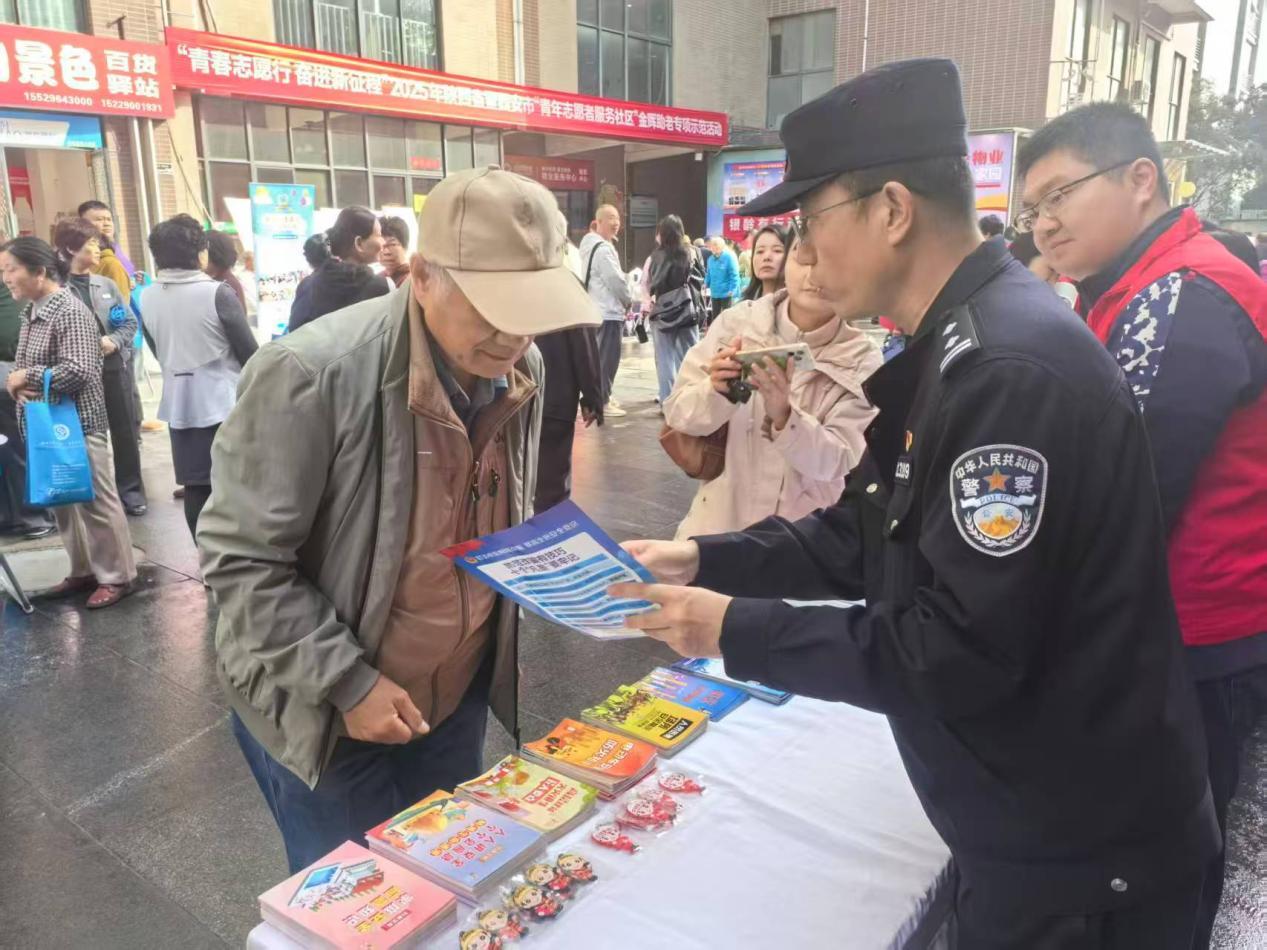 三秦都市报-三秦网讯(记者 李佳)“免费领鸡蛋背后藏着怎样的陷阱?遇到‘亲人’视频求助转账该怎么办?”10月15日上午,夏日景色二期小区广场上,一场针对老年群体的反诈防盗宣讲引发居民热议。当日,西安市公安局高新技术产业开发区分局鱼斗路派出所联合唐沣社区举办的“青春志愿行,奋进新征程,金辉助老活动”热闹启幕,社区民警带领青年志愿者团队,用接地气的讲解与贴心服务,为老年居民筑起安全防护墙,让“平安社区”的温度浸润人心。