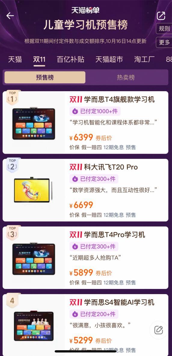 三秦都市报-三秦网讯(记者 任荣)随着“双十一”购物热潮进入白热化阶段,家长以及学生群体对学习机的选购需求持续攀升。今年的双“十一”似乎启动得比往年更早一些,10月9日,京东率先进入预售阶段;10月20日晚 8点,天猫正式开卖。这是第十七个“双十一”,也是 AI 全面融入电商体系后的第一个节点。