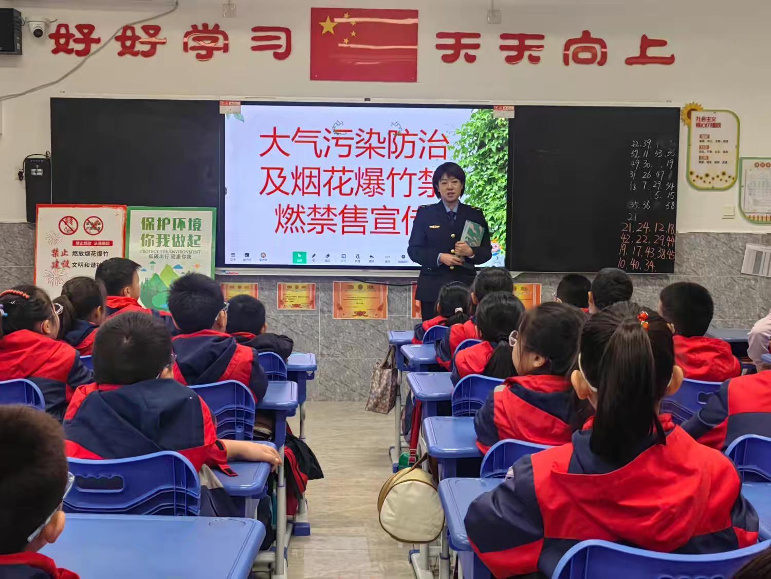 随着下课铃声响起,雁塔分局工作人员走进教室,为同学们详细解读了燃放烟花爆竹的危害,并普及生物多样性保护、低碳环保小常识等知识。活动中,同学们踊跃发言,现场气氛热烈。工作人员还为学生代表颁发“环保小卫士”勋章,呼吁大家从现在开始,从身边的小事做起,争做禁燃禁放的“宣传员”和“监督员”。
