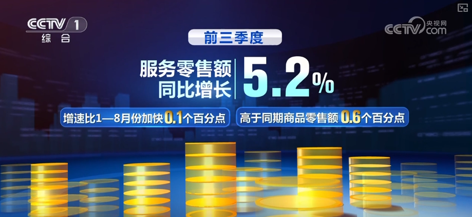 2025年以来,服务消费增长加快。前三季度,服务零售额同比增长5.2%,增速比1—8月份加快0.1个百分点,高于同期商品零售额0.6个百分点。其中,文体休闲服务类、通讯信息服务类、交通出行服务类零售额都实现两位数增长。