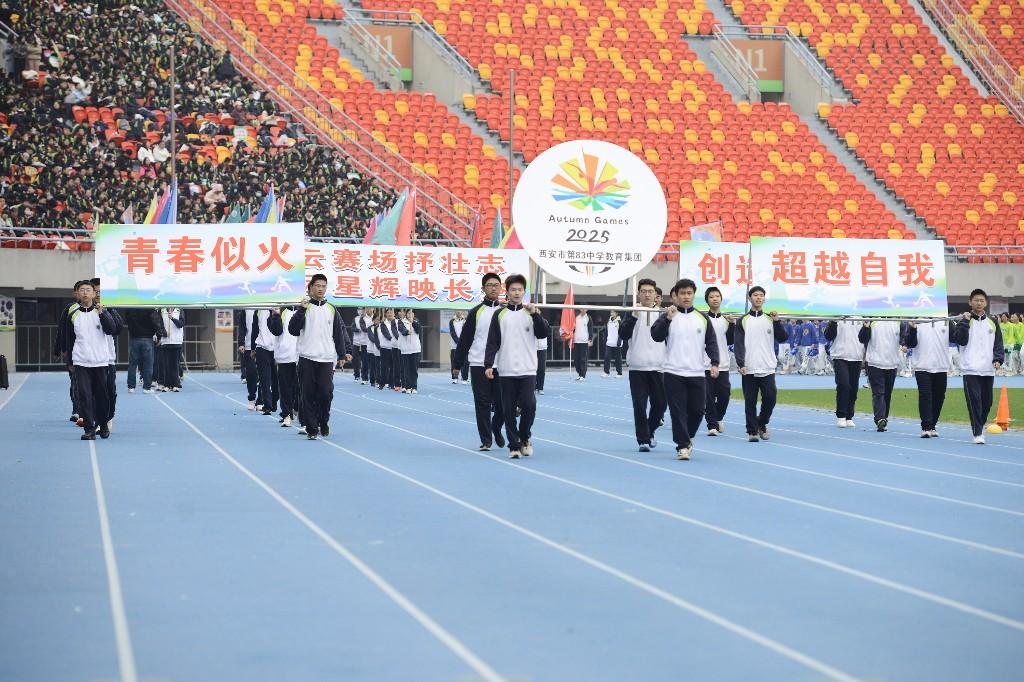 三秦都市报-三秦网讯(记者 郭子荻)10月21日,西安市第八十三中学教育集团第二届体育节暨第55届田径运动会在陕西省体育场盛大启幕。本届体育节首次实现集团内五校区(本部、浐灞第一分校、浐灞第二分校、东校区、北校区)联动,来自146个班级代表队的3510名运动员与近万名师生打破校区界限,混合编组,同场竞技,共同书写集团化办学发展的新篇章。