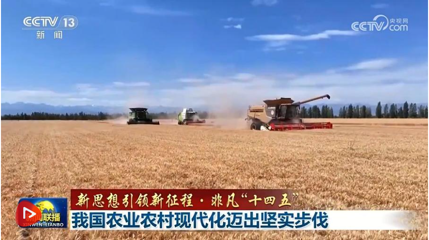 央视网消息(新闻联播):习近平总书记指出,没有农业农村现代化,就没有整个国家现代化。“十四五”这五年,我国坚持农业农村优先发展,深入实施乡村振兴战略,推动农业农村发展取得新的历史性成就,为农业大国向农业强国跨越奠定了坚实基础。