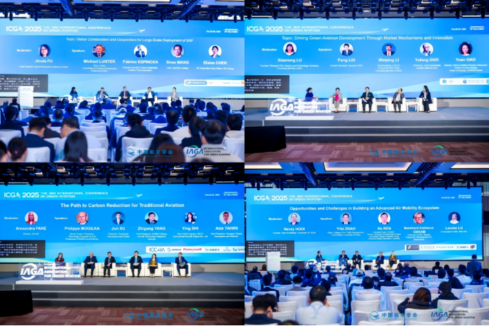 圆桌讨论聚焦“可持续航空燃料(SAF)大规模部署全球协同与合作”“利用市场机制与创新推动绿色航空发展”“传统航空业碳减排之路”“先进空中交通生态系统构建的机遇与挑战”四大关键议题,第十四届全国政协委员、国际民航组织(ICAO)前任秘书长柳芳,荷兰基础设施与水管理部可持续航空国际负责人、国际民航组织环保委员会CAEPMichael Lunter主席以及来自亚洲可持续航空燃料协会、欧洲可持续航空联盟、空客、霍尼韦尔、中国商飞等多家机构的专家们开展深度对话。大会邀请了来自意大利、英国和美国的国际知名专家围绕绿色航空结构、航空复合材料以及电动航空开展综述报告。