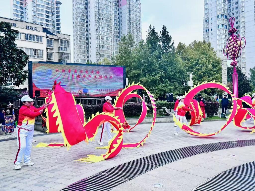 舞台上,“蛟龙”上下翻飞,时而腾空而起,时而盘旋低回,以磅礴之势点燃全场气氛。戏曲《大升官》《三娘教子》接连上演,演员唱腔字正腔圆,现场掌声、喝彩声不断,让老戏迷们过了把“戏瘾”;小品《邻里碎事》贴近生活、诙谐生动,舞蹈节目优美动人,吸引了众多社区群众驻足观看、积极互动。活动现场还同步开展了人口普查、反诈骗宣传、口腔健康知识普及、普法教育等多项便民服务,通过政策宣传与志愿服务相结合,让居民在感受邻里温情的同时,收获知识和健康。