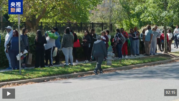 当地时间21日,在华盛顿特区的一处救济点,被拖欠工资的联邦雇员排起数十米长队,领取免费食品。 随着政府“停摆”持续,首都地区食物援助中心日前宣布,将从本周起为联邦雇员发放免费食品,21日的活动是第一场。该组织还将在华盛顿市区以及马里兰州、弗吉尼亚州多个地点开展类似活动。