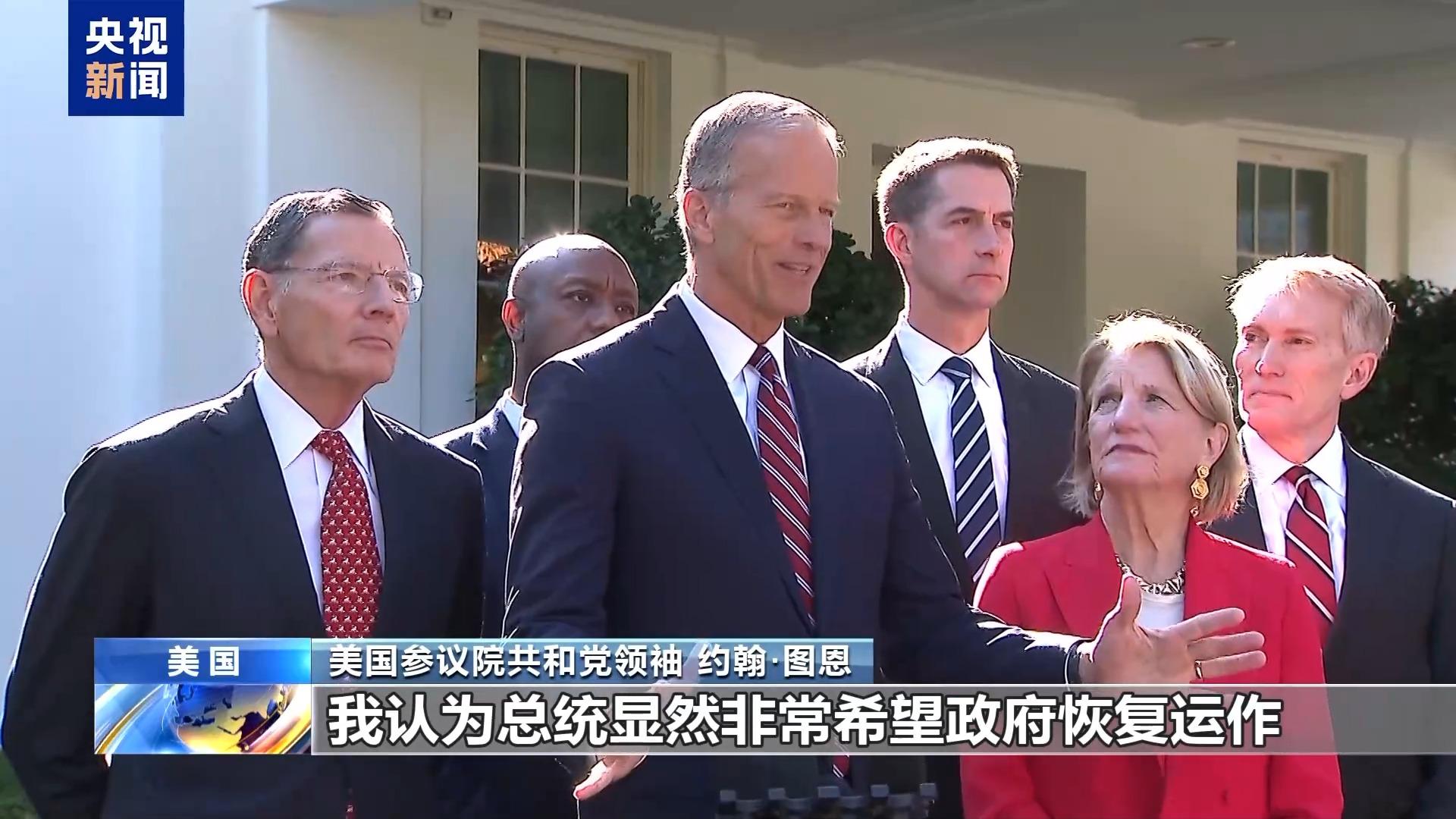 美国参议院共和党领袖 约翰·图恩:我认为总统显然非常希望政府恢复运作,我们在这一点上意见一致。而且我认为他希望民主党人能接受合理的提议,但这些都必须等到政府恢复运作后才能实现。