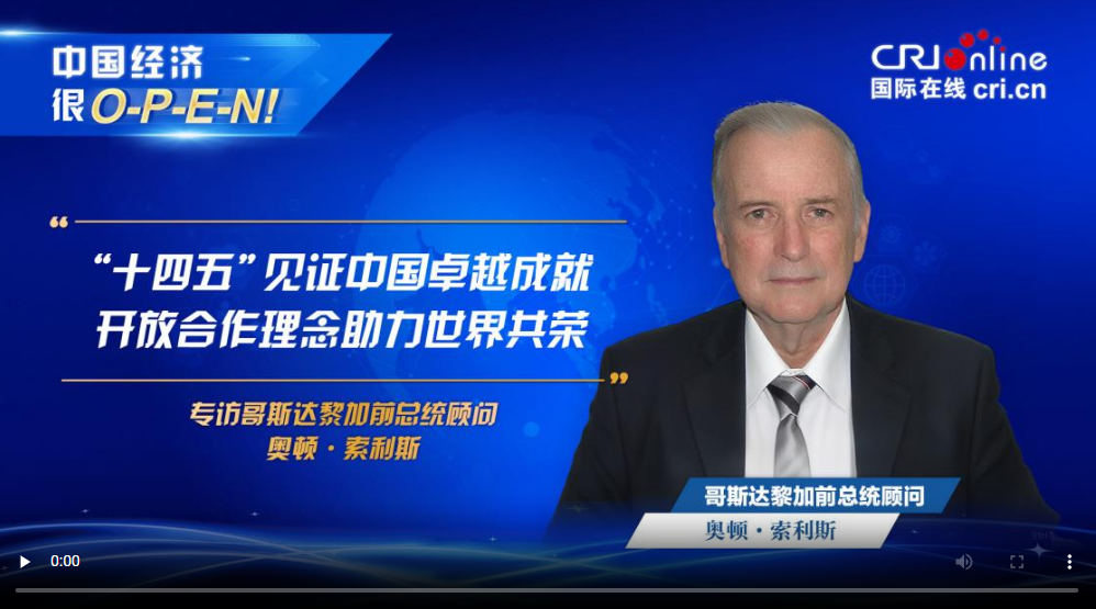 哥斯达黎加前总统顾问奥顿·索利斯近日接受国际在线专访时高度评价中国“十四五”时期取得的卓越成就,他指出,中国在清洁能源、交通基建、货币数字化及太空探索等领域均已位居全球顶尖行列。在索利斯看来,中国为哥斯达黎加等其他发展中国家进入更加庞大的国际市场创造了机遇,同时依托高效产能显著降低了绿色转型成本,使各国得以通过低廉的价格获取清洁能源与高科技产品。展望未来,索利斯对中国经济充满信心,并期待中国在国际舞台上继续发挥维护和平与发展的引领作用。