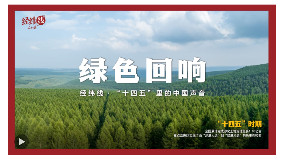 “中国式现代化是人与自然和谐共生的现代化。”当呼啸的风在沙漠崛起的“光伏长城”前降低了分贝,当塞罕坝百万亩林海的涛声谱写向绿而行的乐章。听!这是“十四五”时期的绿色回响。